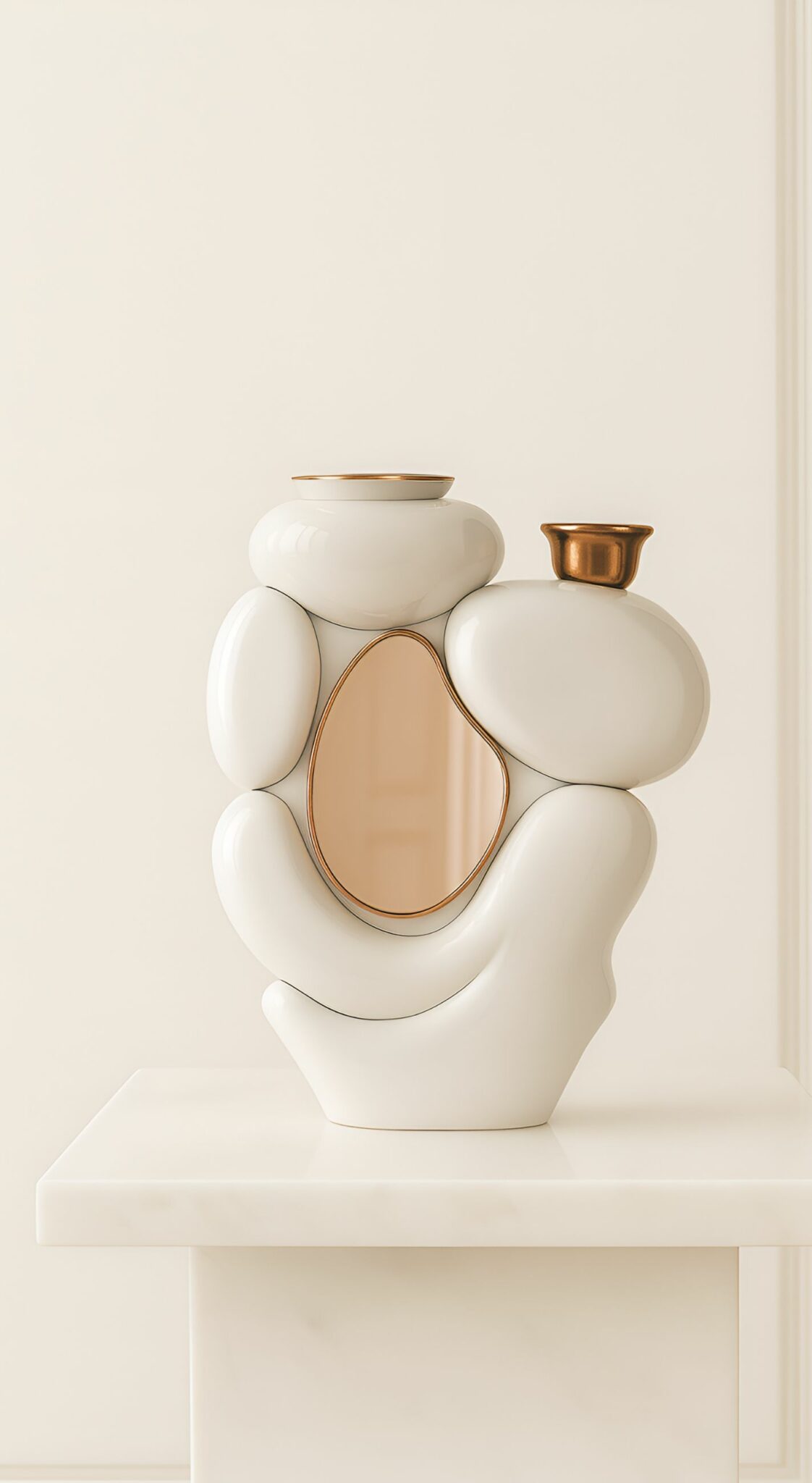 BOEL s’inspire de la douceur des galets façonnés par le temps. Ses volumes arrondis s’assemblent comme une petite constellation minérale, tandis que le miroir central capte la lumière et lui offre une nouvelle trajectoire. Conçu comme un rituel, BOEL transforme la simple lueur d’une bougie en une expérience presque scénographique : la flamme se reflète, se dédouble, révèle des nuances subtiles et instaure un climat de calme et de présence.