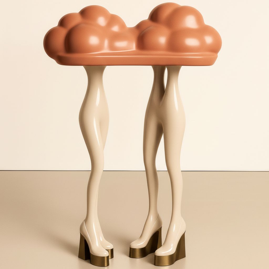 Entièrement façonnée à la main en résine polyester et métal, la pièce révèle un glossy couture, entre design collectible et objet narratif. HEAD IN THE CLOUDS n’est pas seulement une console, mais un fragment de rêve matérialisé,une œuvre où humour, et poésie se rejoignent.