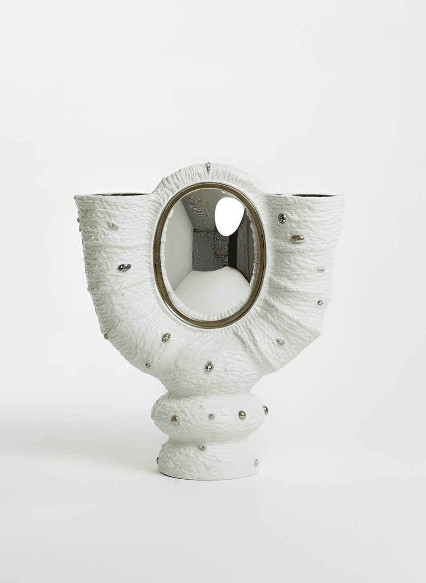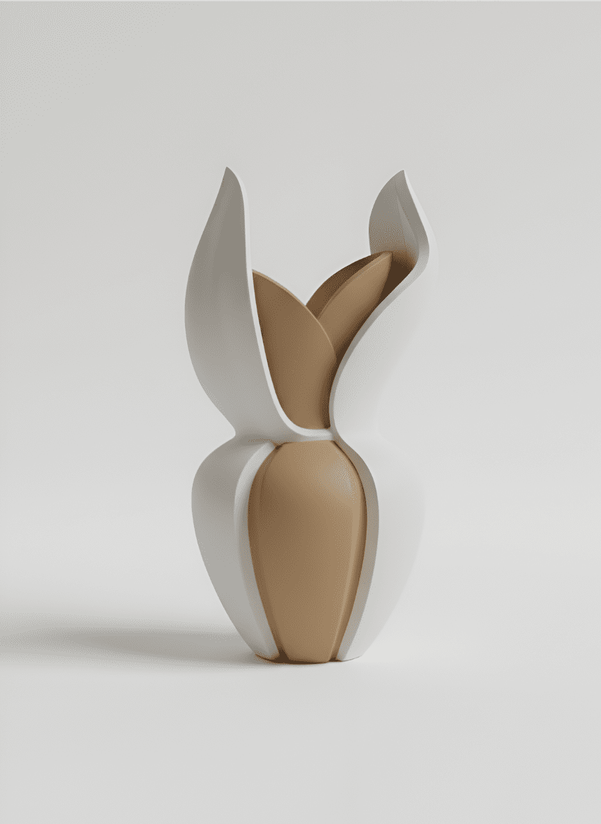 Né d’une recherche sur la fluidité et les formes organiques, LIPPA réinvente le vase comme un objet-sculpture. Sa silhouette ouverte, révèle un cœur turquoise brillant : une lumière intérieure qui évoque le souffle, l’intime, l’éclosion.