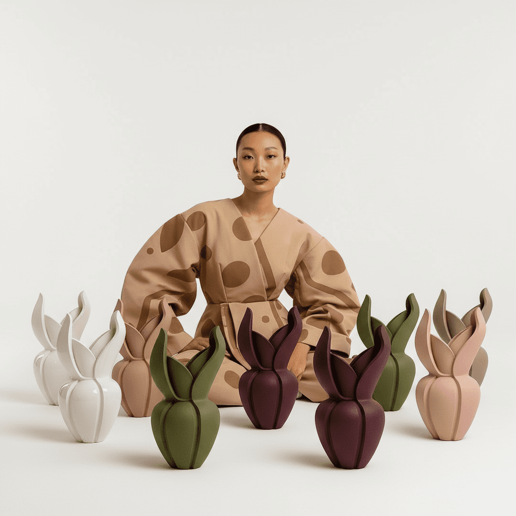 Inspiré par la fluidité des silhouettes aquatiques, le vase NAÏADE déploie une forme organique aux lignes ondoyantes, comme un mouvement figé dans la lumière. Ses pétales élancés, ouverts ou refermés selon l’angle de vue, évoquent une créature d’eau émergente, douce, mystérieuse, presque vivante.